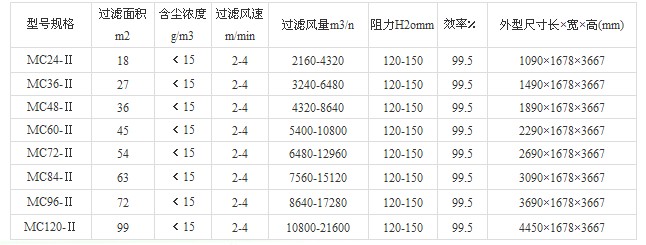 脈沖除塵設(shè)備優(yōu)點的基礎(chǔ)上,采用了低阻力脈沖閥,使脈沖除塵設(shè)備的控制系統(tǒng)和過濾袋等的壽命比MC-Ⅰ型脈沖除塵設(shè)備延長一倍以上,減少了脈沖除塵器維修工作量。