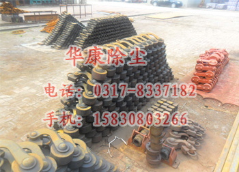 振打錘的軸扣采用的是將U型卡和與軸連接的軸卡兩個零件構(gòu)成,再將兩個零件焊接在一起,需要注意的是焊接而成的軸扣要_所要求的相對位置,使得組裝后的振打錘正確的打到要求位置。一般是一排極板安裝一個振打錘,同一電場各排的